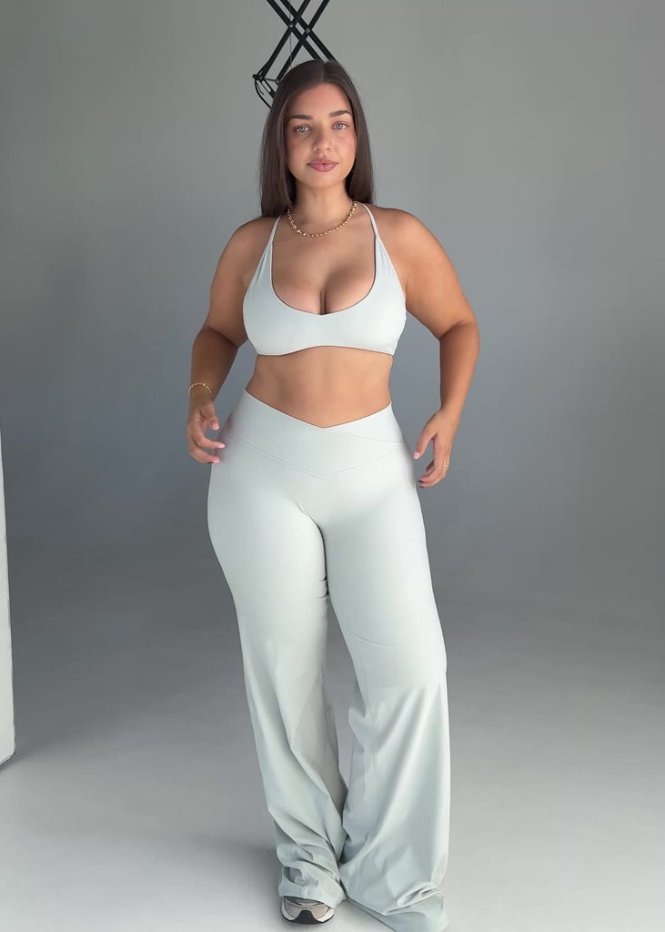 The Cross Over Flow Flares are a refined essential designed to move with you effortlessly. Featuring a flattering cross over waistband and a softly flared leg, they sculpt and elongate the silhouette while allowing fluid movement throughout the day. Crafted from Kikiva’s premium fabric, they offer a smooth second skin feel, designed to pair seamlessly with your Core Capsule pieces, they transition effortlessly from studio movement to elevated everyday wear.
