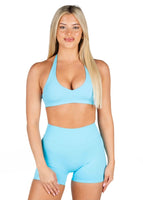 The Dynamic Staple Halter Crop is stylish, sporty, and effortlessly chic all at once. It features a low V-cut design with an open halter back, minimal branding, removable padding, and thinner straps that make it feel and look elevated compared to our Signature Halter. This crop flatters with a sculpting, tight fit and offers medium support that is ideal for low-impact workouts, hot-girl walks, or grabbing an iced latte. Pair it with our Dynamic Shorts to complete the look and make a statement.