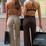 The Flow Flares are designed for fluid movement and all day wear, blending comfort and elegance in one timeless silhouette. With their flattering mid rise fit and softly flared leg, these pants move with you seamlessly from studio sessions to everyday styling. Crafted from our premium Kikiva fabric, they offer a smooth, second skin feel that provides gentle compression while maintaining lightweight breathability. The wide waistband offers a sculpting fit that supports without constriction, making them your go to for effortless confidence and comfort.